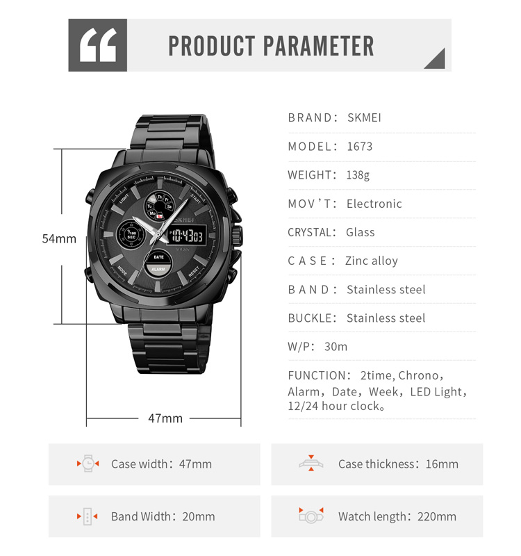 SKMEI Dual time watch 1673