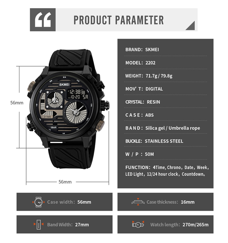 SKMEI Dual time watch 2202