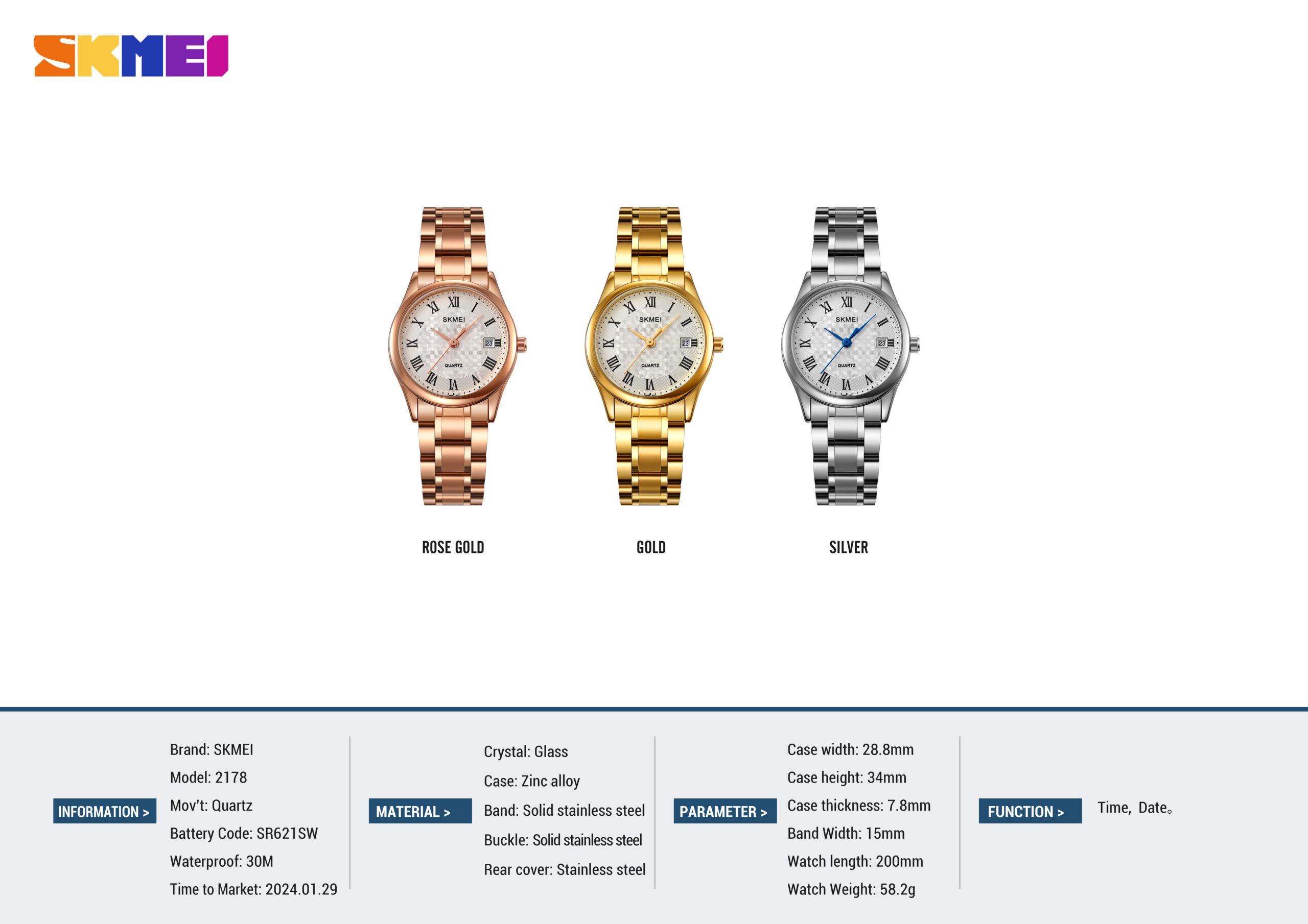 skmei 2178 stainless steel women watch
