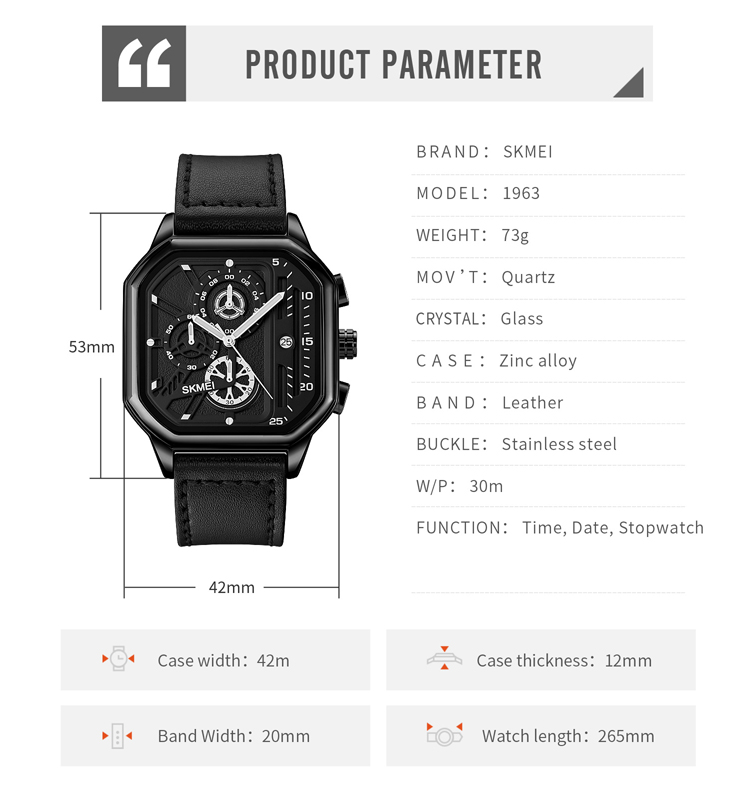 SKMEI 1963 Brand Chronograph Quartz Watch Men Sports Watches Male