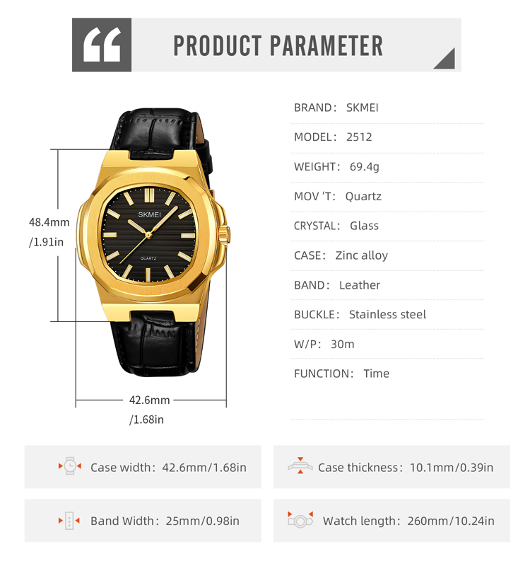 Fashion Watch SKMEI 2512 Quartz Watch Genuine Leather Band
