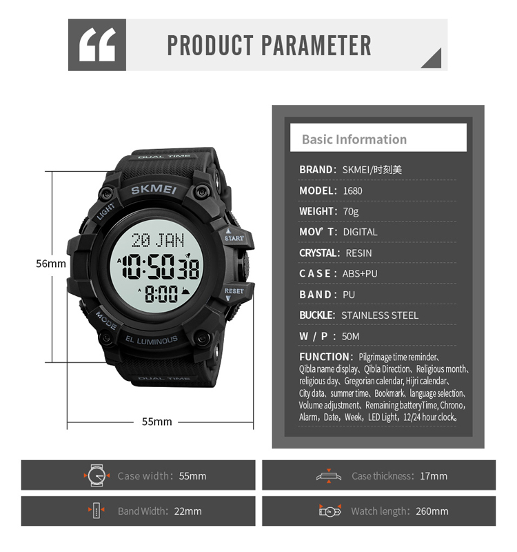 SKMEI Muslim Azan Watch 1680